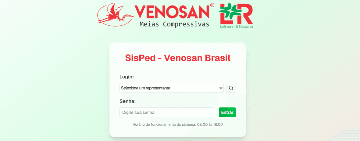 Campo para digitar a senha correspondente ao representante selecionado.Atenção: A senha diferencia letras maiúsculas de minúsculas (case sensitive). Certifique-se de digitar exatamente como foi cadastrada.